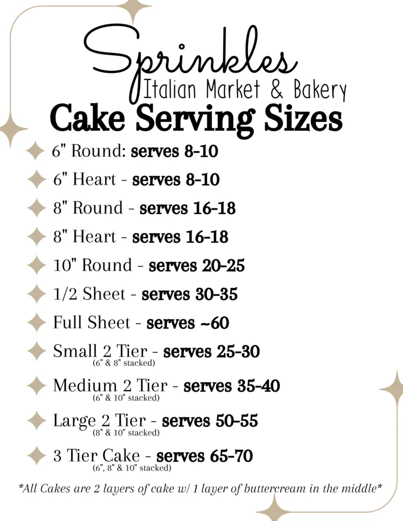 *Cake flavors, sizes, servings, and options are listed at the bottom*